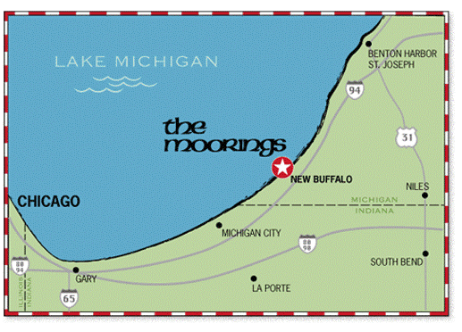 Situated right on Lake Michigan in the very popular community of New Buffalo, Michigan, The Moorings is a convenient drive from Chicago and is located in the heart of the harbor country. The Moorings is the largest of the area’s boating facilities with many amenities for today’s recreational boater. There is on-site, professional management that maintains the facility to your exacting standards. When you consider all the convenient amenities of The Moorings and the attractions of the New Buffalo area, you will realize it is truly a great home for your summer boating pleasure.